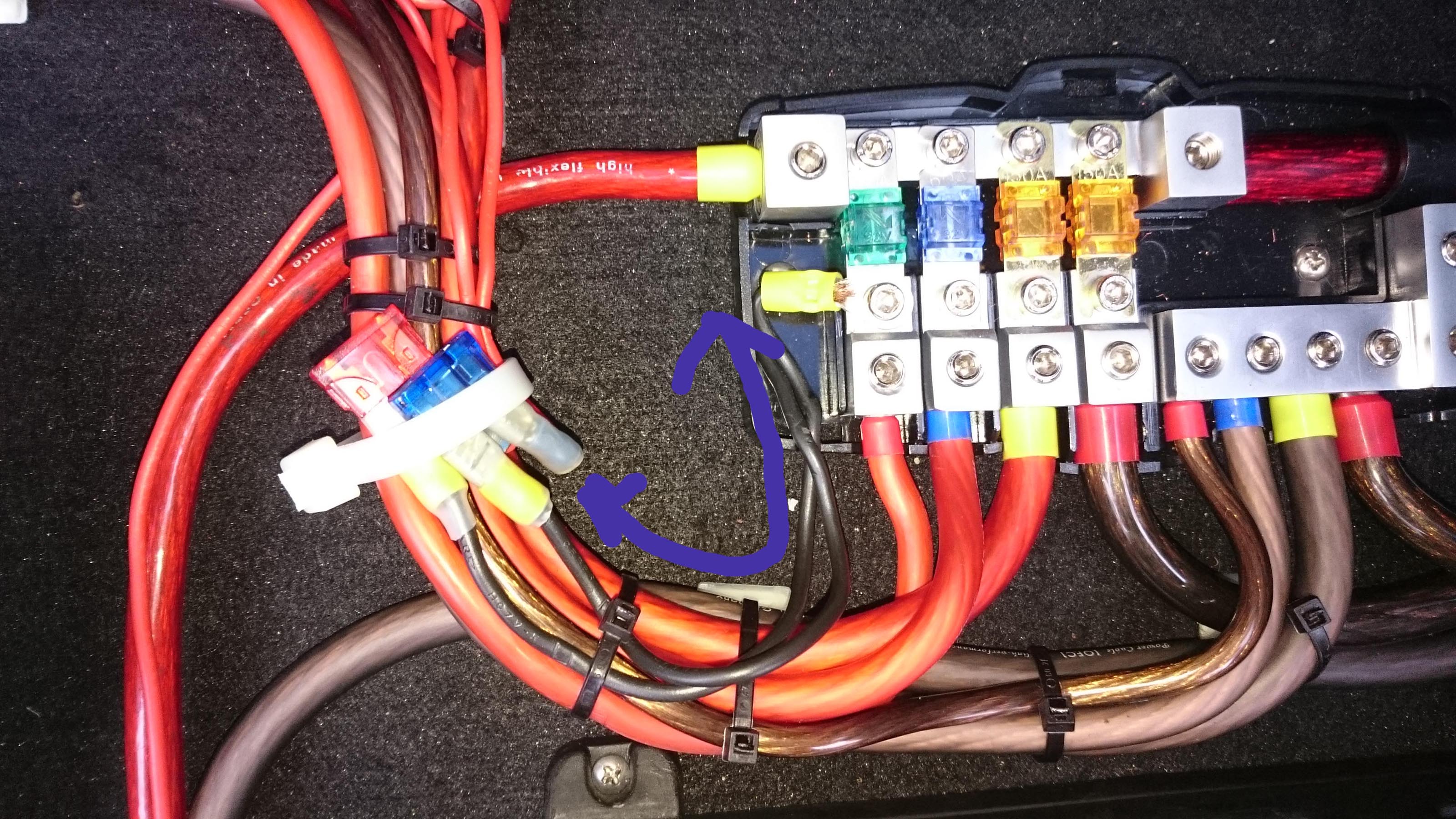 Man sieht auf dem Bild zwei Stück KFZ Flachstecksicherungen. Diese müssen fest gehaltert, also mit einem Halter geschraubt sein. Dieser Punkt ist soweit klar. Nun geht es um die Schwarze zuleitung in 4mm². Diese ist auf dem Sicherungsverteiler an dem Punkt der 30A Sicherung mit Angebracht. Laut aussage des einbau Juror, müsste dann das Kabel einen größeren Querschnitt haben, damit im falle eines Kurzschluss die 30A Sicherung auch wirken kann.