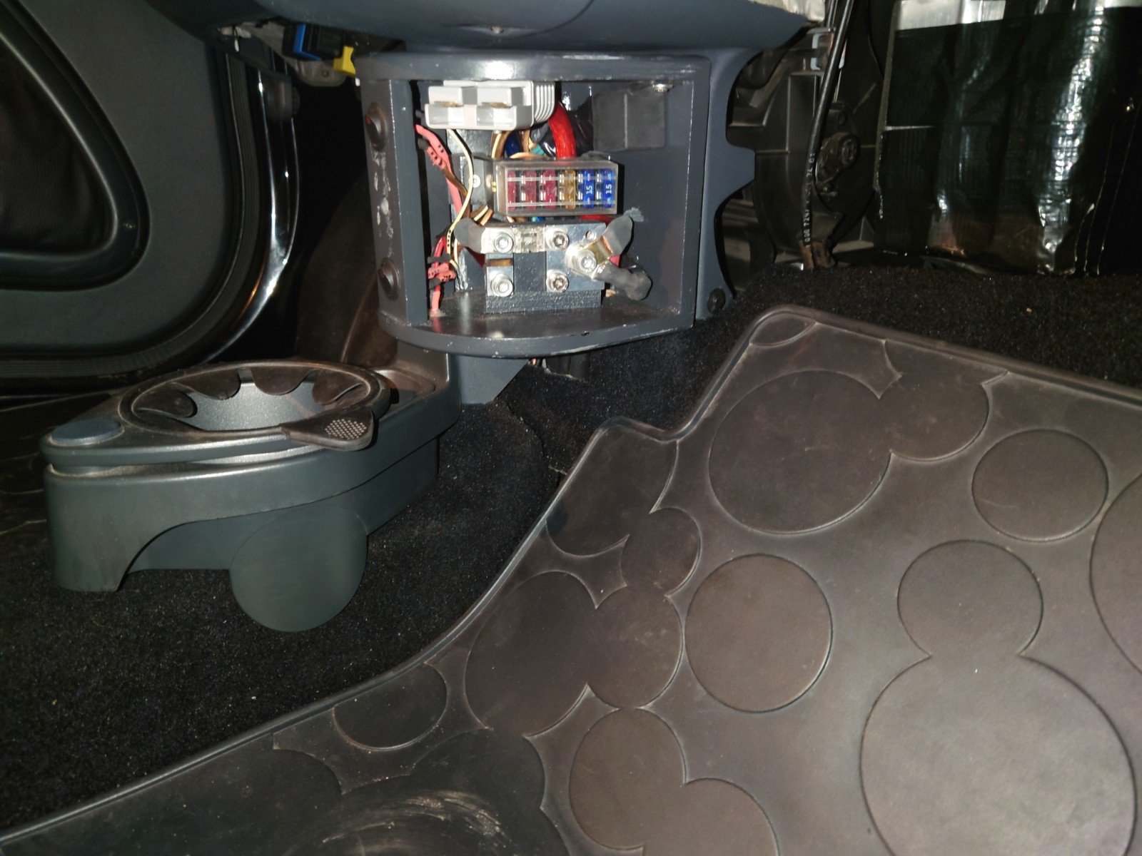 Der Subwoofer ist in den Beifahrerfußraum gewandert und ersetzt den originalen Styropor-Keil...so wie das Zubehör von Hubcar oder Isotec. Von Smart selber bzw. Brabus gab es einen Untersitz-Subwoofer. Auf jeden Fall ist hinterher nichts zu sehen.