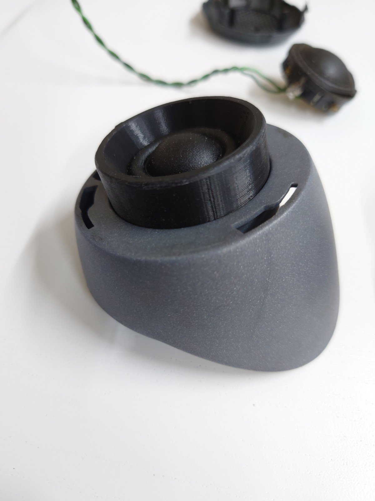 Das Armaturenbrett wurde auf 6mm aufgebohrt und die Hochtöner (Türmchen) wurden komplett in 3D-Druck nachkonstruiert.