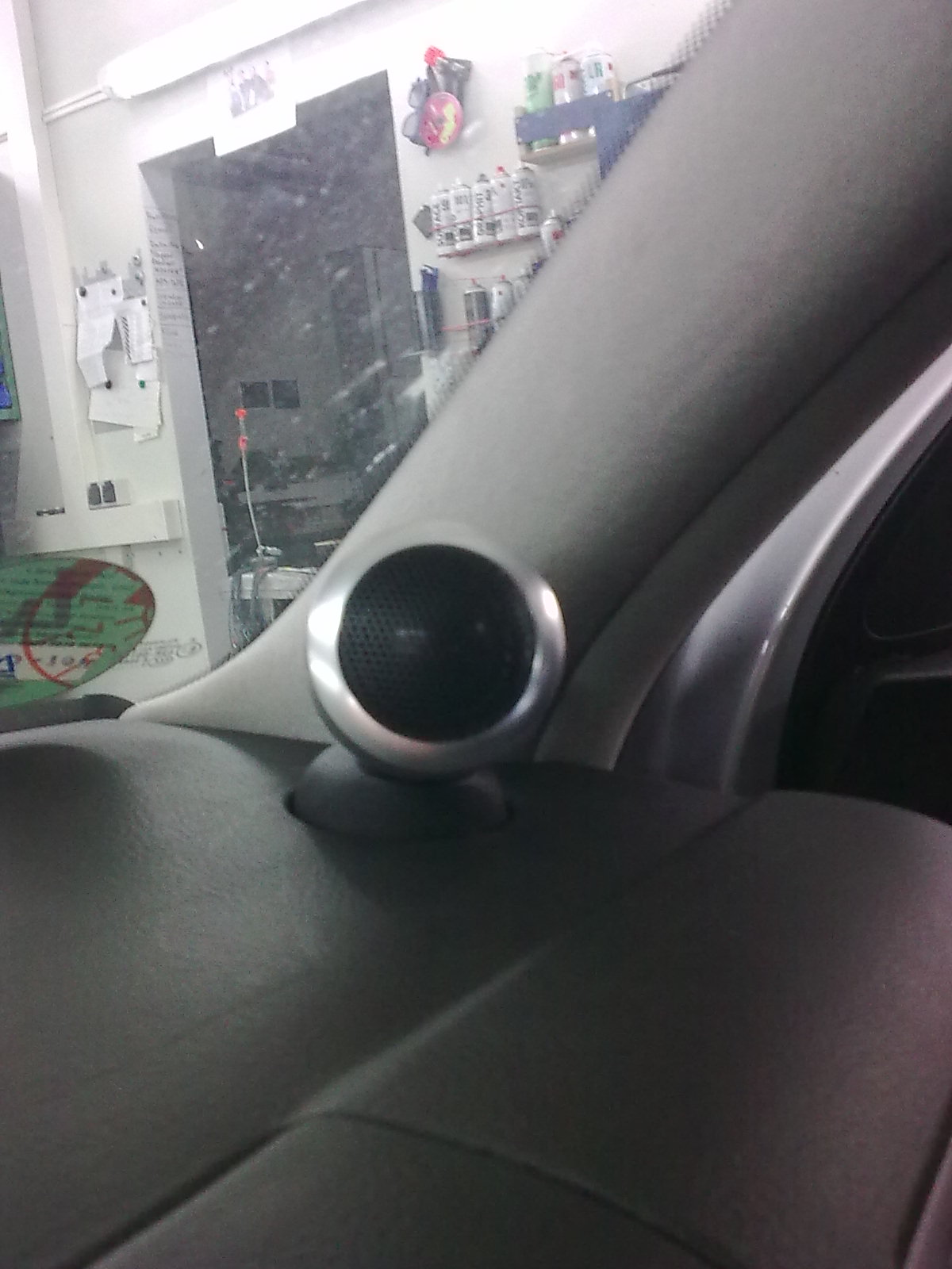 Die Entfernung zur Frontscheibe hat sich nicht geändert. Jetzt geben die HT ihre Schallwellen sogar mehr zur Scheibe hin ab (Vorher waren sie direkt zum Gesicht hin ausgerichtet). Und es ist angenehmer. Die aktuelle Trennung am TMT ist bei 3,2 KHz 12db LP und am HT bei 3,6 KHz 12db HP. Diese habe ich rein nach Gehör festgelegt und wird noch mal grafisch dargestellt und eventuell verändert werden.