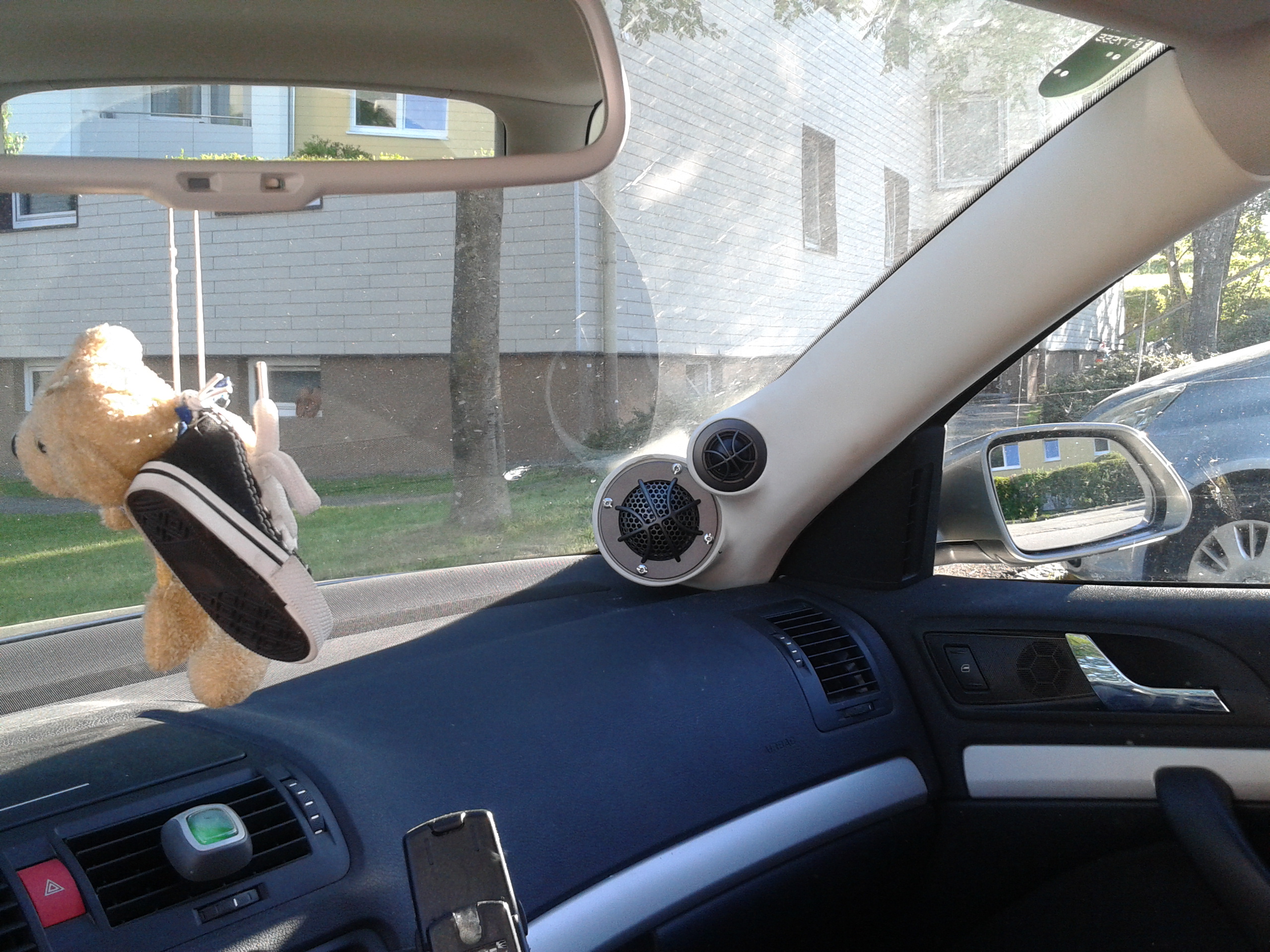 Frontsystem wird ein DLS Ultimate UP36i 3 Wege Aktiv System. Hoch und Mittelton in der A-Säule und TT anfangs im Originaleinbauplatz.