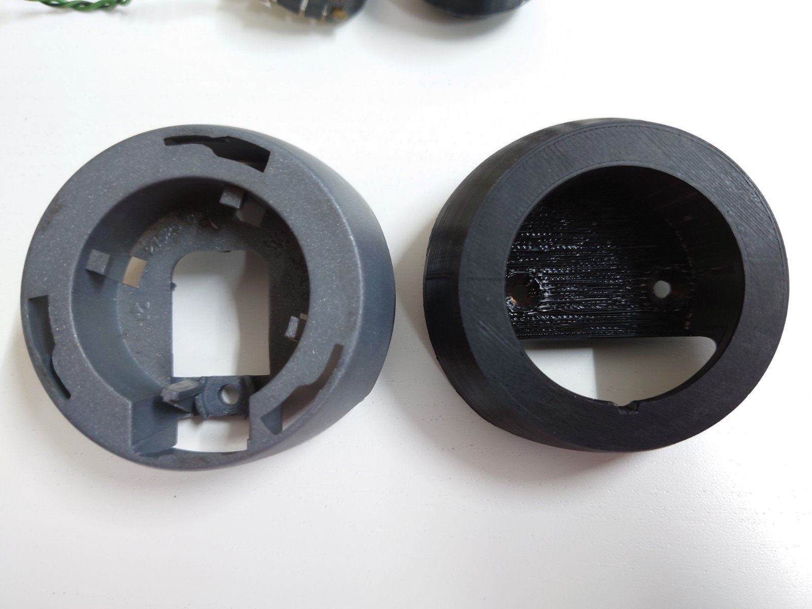 Links das Original...Rechts mein 3D-Druck (kleines Malheur beim Bohren passiert...kriege ich noch hin)