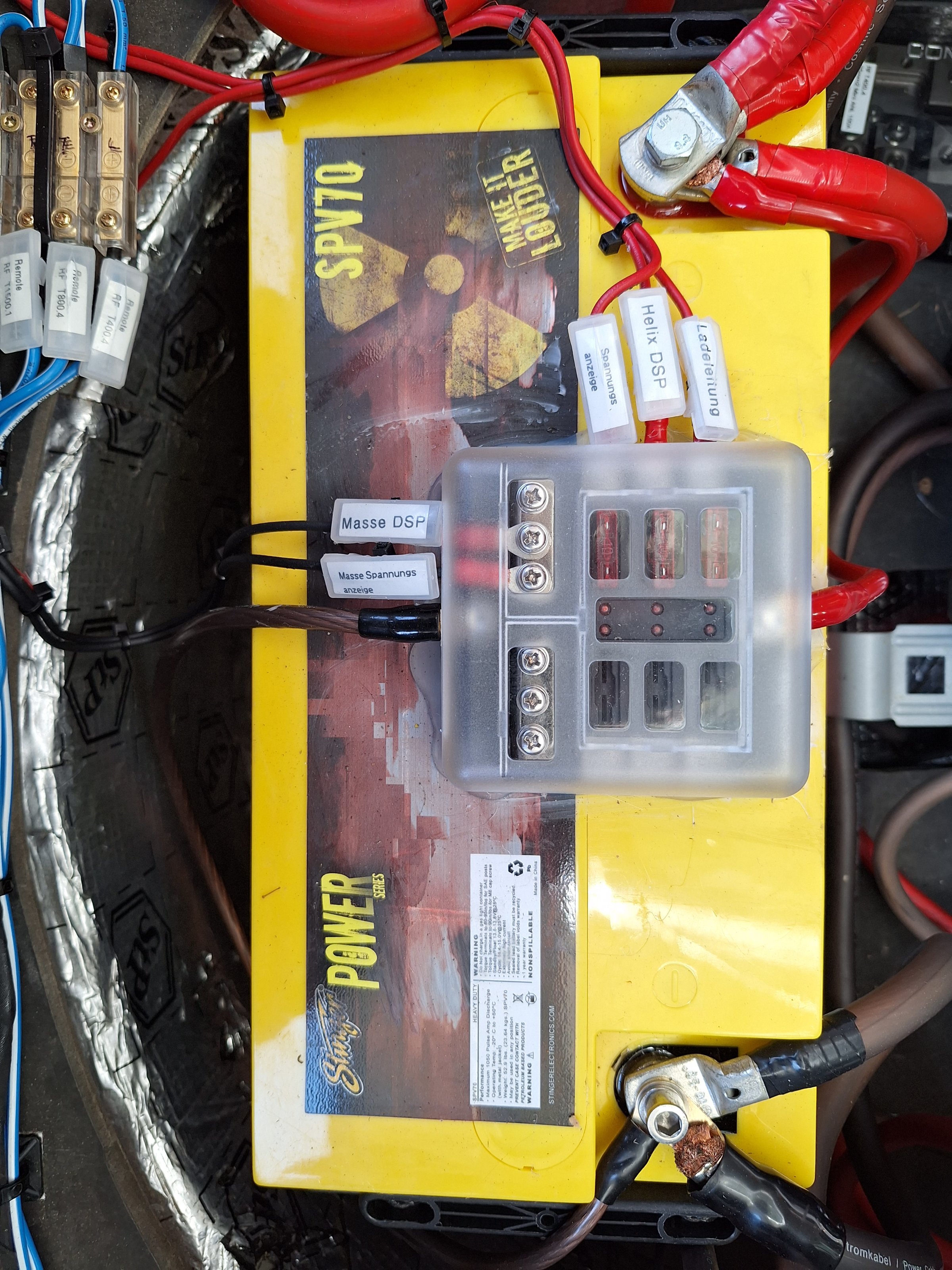 Die andere kleine Leitung ist eine zusätzliche Ladeleitung für den Winter und mit 7,5A abgesichert und die dsp Leitung hat auch eine Sicherung von max. 10A