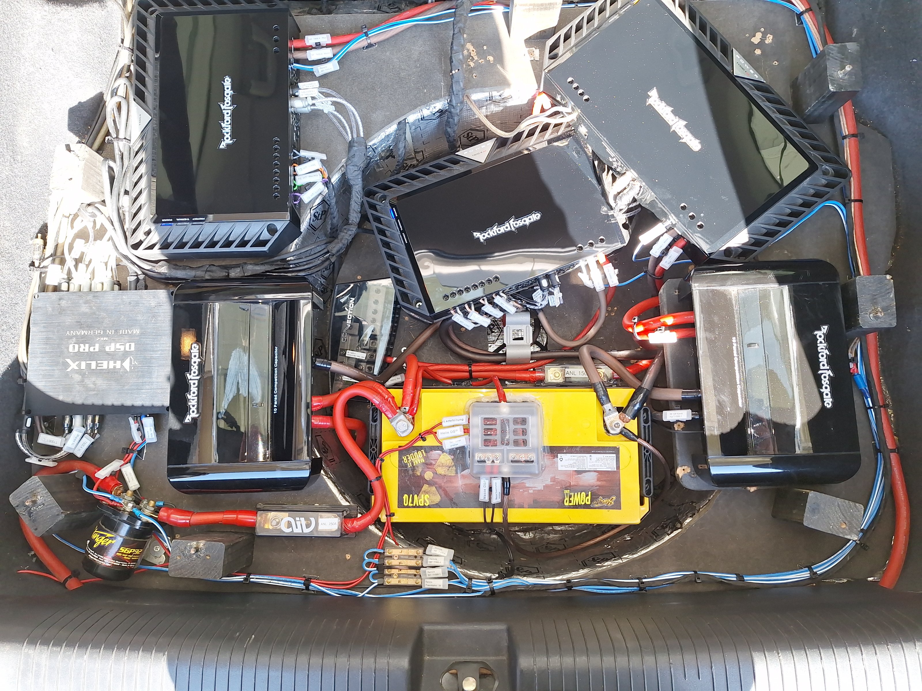 Gern hätte ich eine neue Grundplatte gemacht und die Endstufen anderes angeordnet... aber naja...