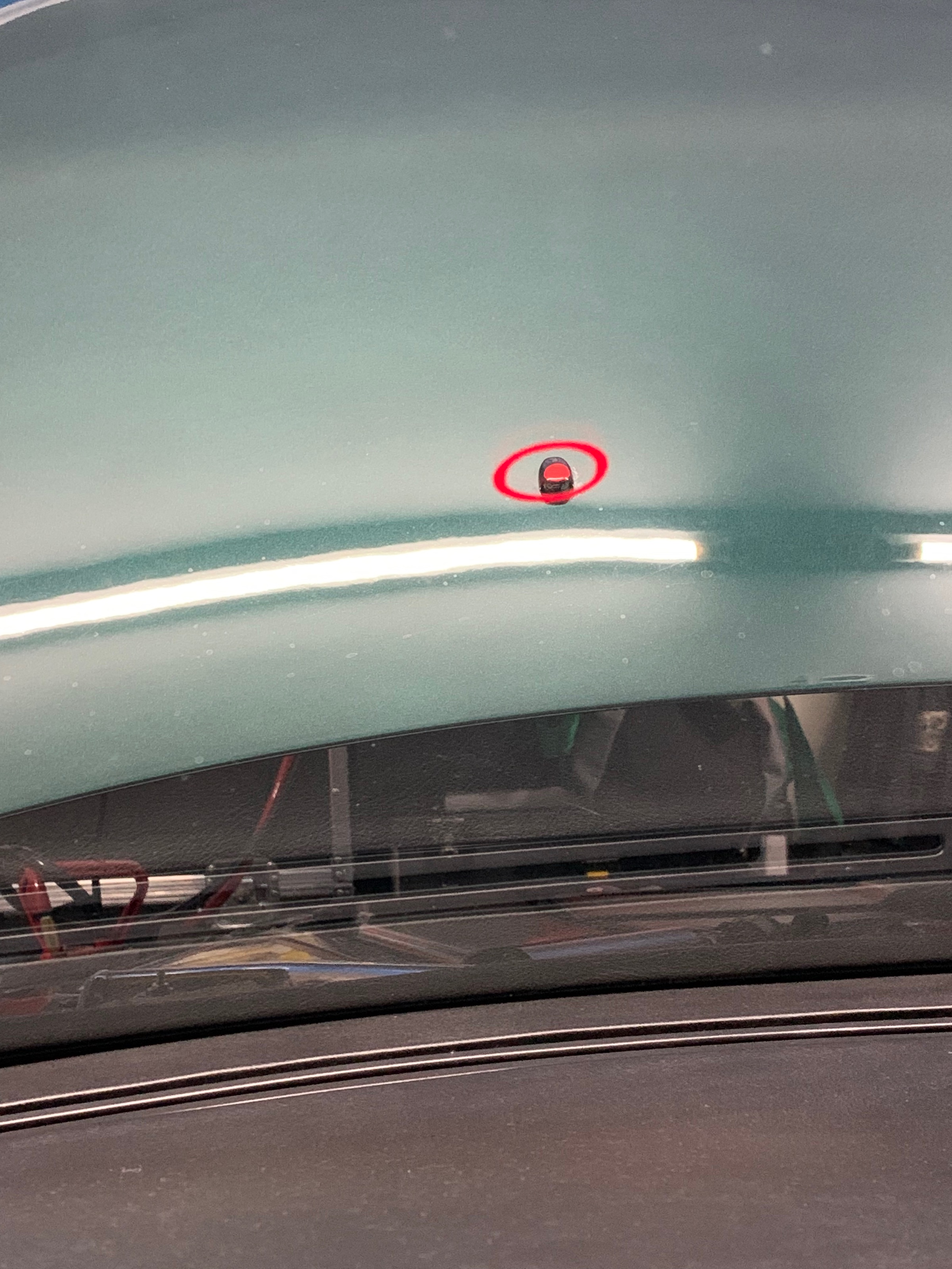 2. Weißes Etikett der Dashcam mittig im Loch