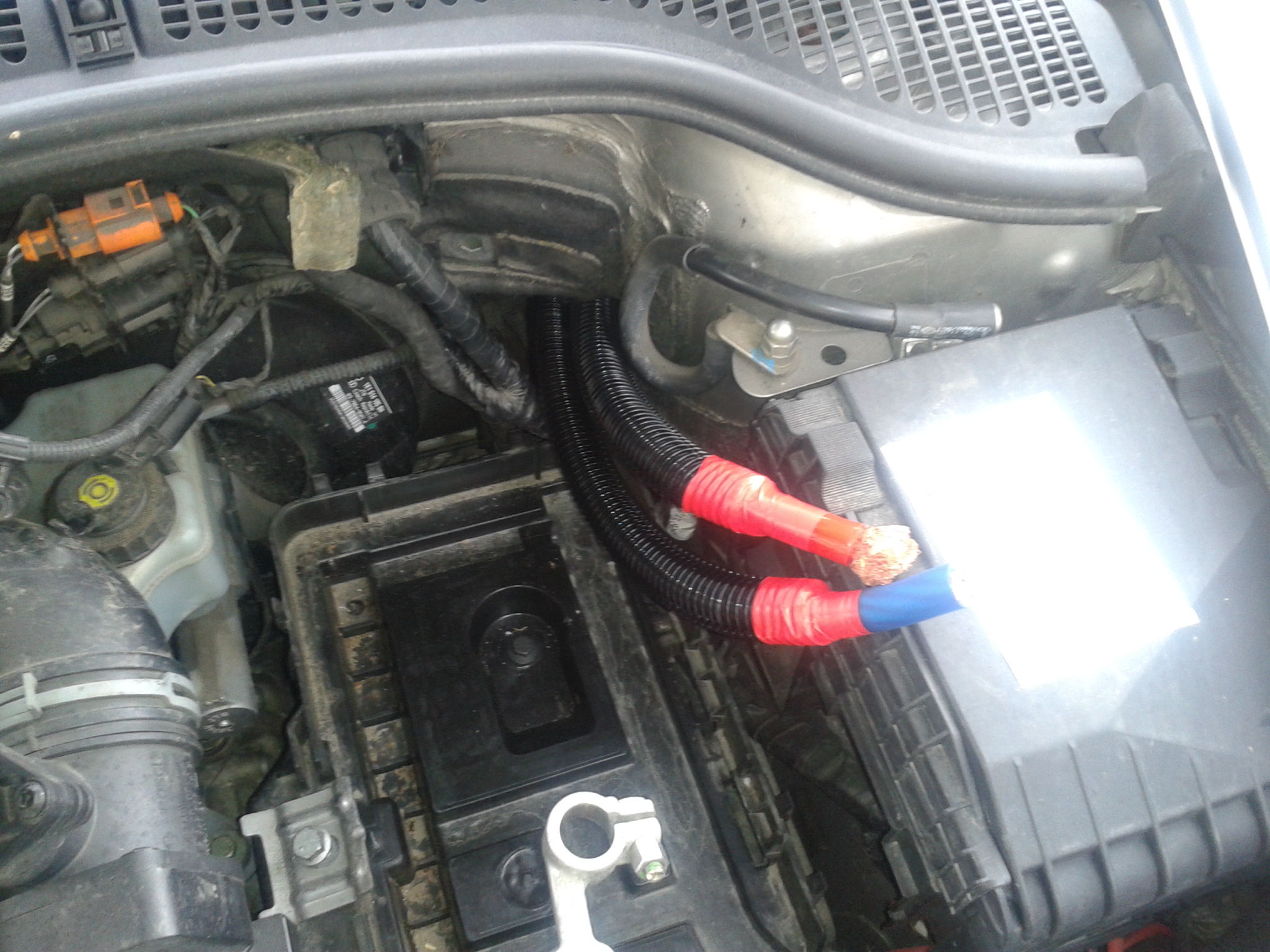 Powerkabel sowie Massekabel ( beides 50mm²) sind schon von der Batterie in den Kofferraum gelegt.