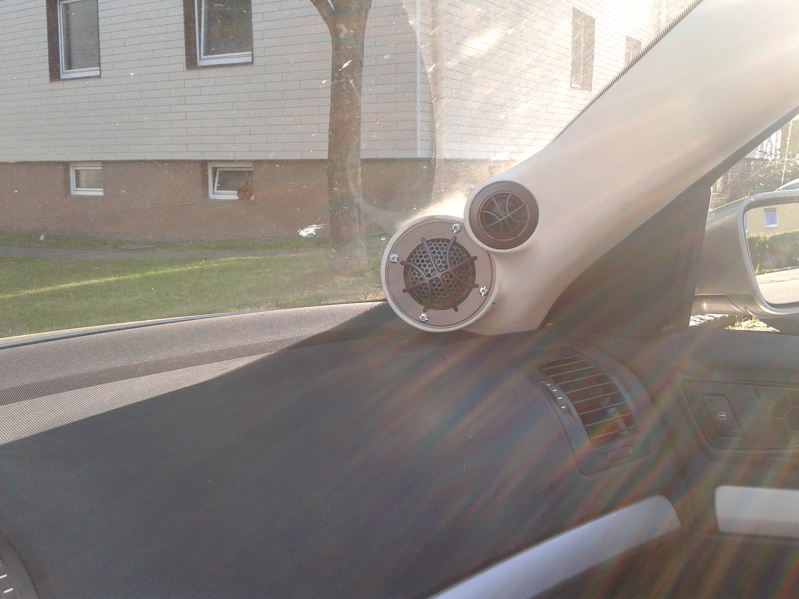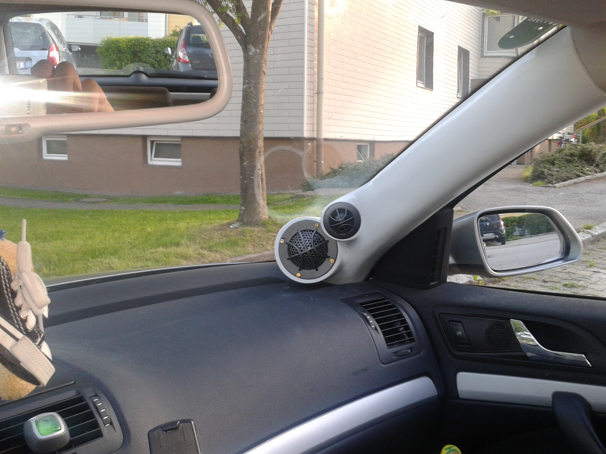 Frontsystem wird ein DLS Ultimate UP36i 3 Wege Aktiv System. Hoch und Mittelton in der A-Säule und TT anfangs im Originaleinbauplatz.