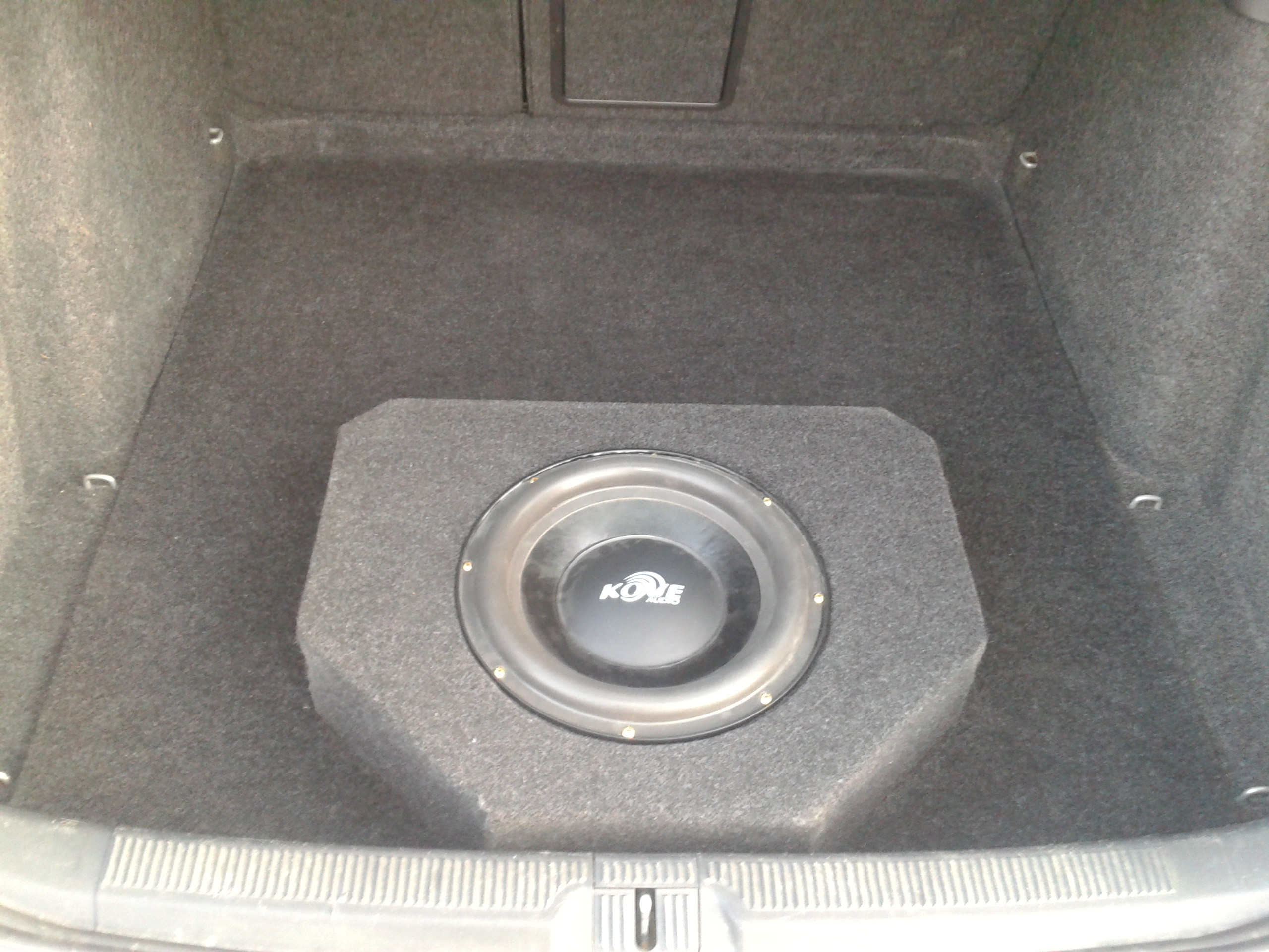 Sub wird ein KOVE Armageddon XX12 in einem geschlossennem Gehäuse in der Reserveradmulde.